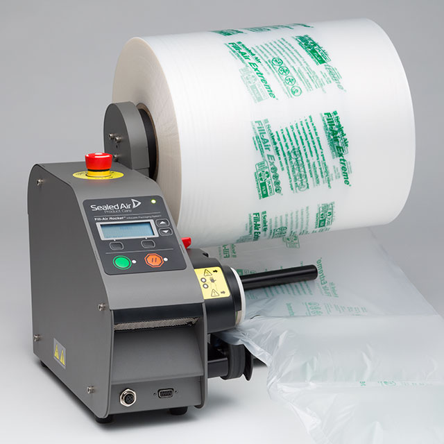 Fill-Air Rocket ™ è l'evolutione del sistema Cyclone. Fill-Air Rocket ™ è il sistema di riempimento vuoti con cuscini gonfiabili più veloce. Fill-Air Rocket ™ è un sistema di riempimento vuoti concepito per rispondere in modo specifico alle attuali esigenze di mercato. Fill-Air Rocket ™ è la soluzione più veloce, più semplice, più leggera, la migliore per le vostre operazioni di imballaggio. L’alta tecnologia della saldatura e la resistenza del materiale dell’imballaggio Fill-Air ® lo rendono altamente riutilizzabile. Il film per imballo Fill-Air ® è riciclabile e perde il 99,3% del volume iniziale quando è sgonfio. Inoltre il sistema occupa poco spazio.