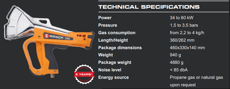 Compatta e leggera la pistola Ripack 2500 è dotato di tecnologia “cold pipe” per una sicurezza senza uguali.