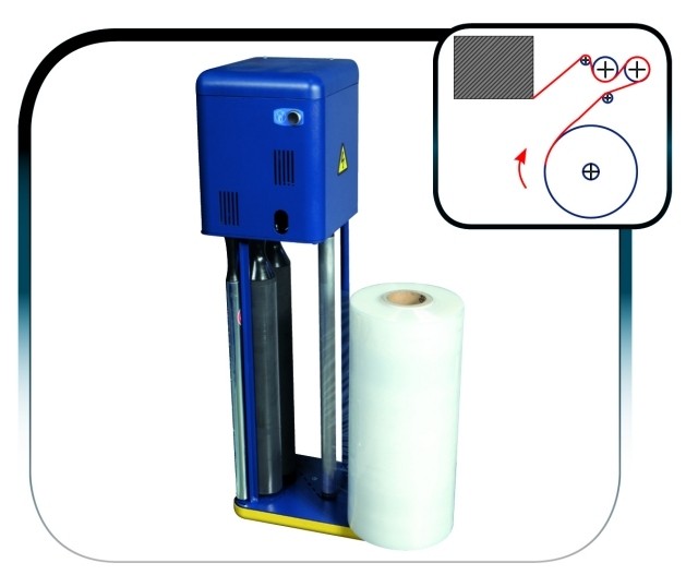 CARRELLO PVS Carrello a rulli di prestiro a doppia motorizzazione indipendente con regolazione da quadro del rapporto di prestiro da 0% a 400%. Forza di deposito del film sul carico regolabile da quadro e controllata da dispositivo elettronico brevettato. Sistema “QLS”(quick load system) per l’inserimento rapido del film. | |