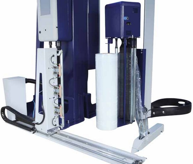 NUOVO DISPOSITIVO DI PINZA, TAGLIO CON SALDATURA O SPALMATURA DEL FILM Il nuovo sistema di avanzamento su guide in alluminio del corpo di saldatura o spalmatura del film, realizzato con cilindro pneumatico telescopico a tre stadi, garantisce una perfetta aderenza della spira finale di film sul prodotto avvolto. La nuova pinza in alluminio comandata da cilindro pneumatico trattiene il film in maniera netta e senza slittamenti durante le fasi di taglio. Il taglio del film è ottenuto con filo caldo e la saldatura con tre piattine regolabili in altezza e larghezza. |