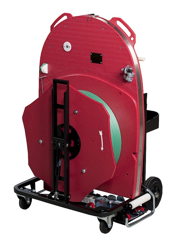 ErgoPack 700 è un convogliatore di reggetta Ergonomico per la reggiatura di bancali in verticale. Il convogliatore ErgoPack 700 è un modello completamente manuale, la catena si movimenta tramite manovella determinando la fase di uscita, arresto e rientro. I materiali tecnici con cui è fabbricata la rendono molto resistente ad urti ed usura. Le ruote in gomma vulcanizzata garantiscono al convogliatore ErgoPack 700 una perfetta movimentazione anche su superfici ruvide e irregolari. Il convogliatore ErgoPack 700 è compatibile con la reggia in Polipropilene e in Poliestere misure a partire da 8,00 mm fino a 35,00 mm di larghezza e spessore massimo 1,3 mm. Con ErgoPack 700 lo spazio minimo tra le assi del bancale, per renderne possibile l’utilizzo, deve essere compreso da 50 mm a 300 mm (spazio in cui si inserisce la catenaria), gli assi del bancale vengono scavalcati e non presentano un problema). Il coonvogliatore ErgoPack 700 non è un sistema completo di reggiatura, ma è necessario un tendireggia o tenditore di reggetta per completare l’operazione di tensionamento e chiusura della reggia.