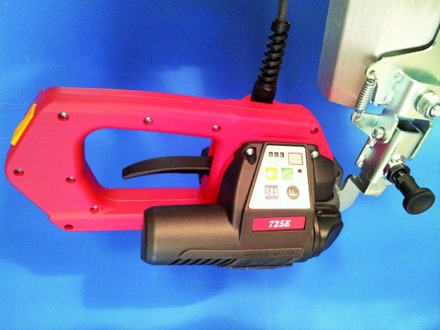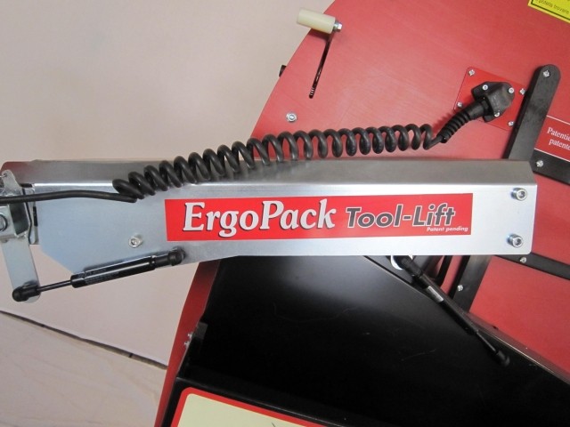 ErgoPack 725E/740E è un sistema Ergonomico di reggiatura di bancali in verticale. ErgoPack 725E/740E è un modello Elettronico, la catena si movimenta tramite il joystick con cui si determinano la fase di uscita, arresto e rientro. ErgoPack 725E/740E è un sistema completo di reggiatura in quanto comprende il tendireggia e il braccio Tool-Lift che lo sostiene. Questo braccio, azzera il peso e le vibrazioni del tendireggia e rende nettamente più sicura, agevole e veloce l’operazione di reggiatura. La differenza tra i due modelli (ErgoPack 725E/740E) è rappresentata solamente dal tendireggia che montano: Entrambi sono tendireggia termosaldanti di ultima generazione di Fabbricazione ( Vedi la sezione prodotti correlati qui sotto). Il modello ErgoPack 725E monta un tendireggia ORT 250 compatibile con reggia da 9,00 mm a 16,00 mm PP e PET e forza massima di tensione 2500 N. Il modello ErgoPack 740E monta il modello ORT 400 compatibile con reggia da 16,00 mm a 19,00 mm PP e PET e forza massima di tensione 4000 N. Il sistema ErgoPack 725E/740E (anche il tendireggia) è alimentato da batteria che garantisce dalle 150 alle 400 reggiature per carica. I materiali tecnici con cui è fabbricata la rendono molto resistente ad urti ed usura. Le ruote in gomma vulcanizzata garantiscono al sistema ErgoPack una perfetta movimentazione anche su superfici ruvide e irregolari.