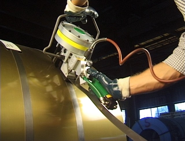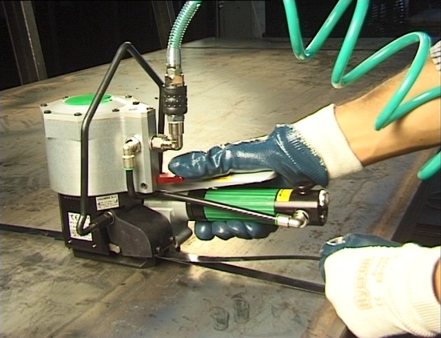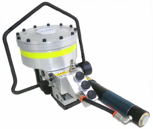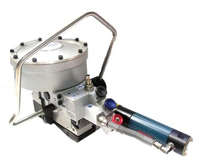 Reggiatrice pneumatica potente e molto affidabile, particolarmente adatta alle applicazioni industriali anche con basse pressioni di rete. Viene prodotta nella versione per reggia da 32 mm. con pulsantiera di comando a 3 funzioni.