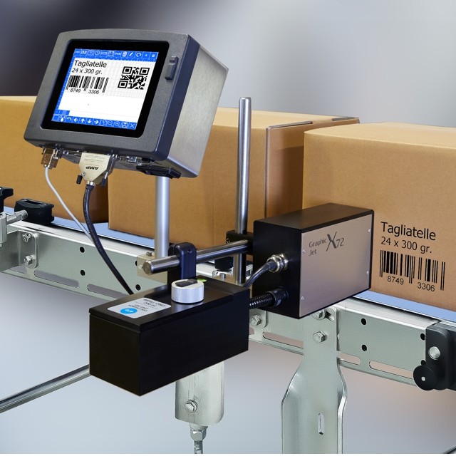 La nuova serie di codificatori GRAPHIC JET X-SERIES grazie alla tecnologia ‘Hi-Res Piezo Inkjet’ permette di stampare in linea testi, loghi e barcode con un‘altezza carattere fino a 72 mm e in alta definizione. L’esclusivo sistema di inchiostrazione FREEFLOW™ non ha parti mobili che necessitano di manutenzione come pompe e valvole. Questa caratteristica conferisce al sistema alta affidabilità e bassi costi d’esercizio.