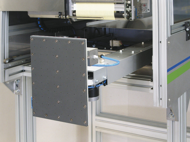 Spitlabel 2 Assi è una stampante-applicatore automatico di etichette che permette attraverso un sistema robotizzato di applicare 2 o più etichette in posizioni e lati differenti su di un pallett. Fiore all’occhiello della gamma, questa soluzione nasce per applicare etichette formato EAN/UCC direttamente sulla linea produttiva. La tecnologia costruttiva, consente con una sola sosta l’applicazione delle 2 tradizionali etichette richieste dalle specifiche internazionali GS 1 / INDICOD sui due lati adiacenti del pallett. L’integrazione è estremamente semplice in quanto sono previsti tutti i segnali d’interfaccia per il dialogo con le logiche programmabili esistenti. Il piattello porta etichette è azionato da una serie di motori passo-passo controllati da un microprocessore. La sua programmabilità consente la scelta di vari cicli operativi con la possibilità di applicare 2,3,4, etichette all’interno di un ciclo predefinito.