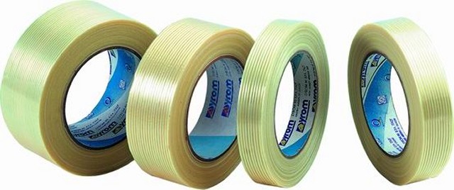 Nastro adesivo rinforzato con fili longitudinali di fibra di vetro.
