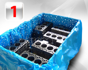 1. Sublimazione: passaggio dallo stato solido allo stato gassoso delle molecole VCI a partire dal materiale protettivo VCI (carta, film, diffusori, spugne, ecc…)