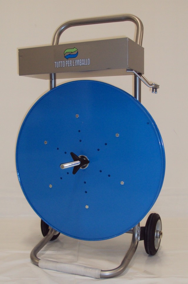Carrello portabobina 4misure per reggetta in plastica con ribobinatura a spirale.