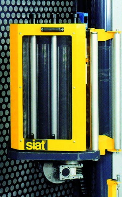 Macchina automatica per l’avvolgimento di carichi pallettizzati con film estensibile. Inserita in una linea di trasporto o all’uscita di un pallettizzatore, provvede al distanziamento, fasciatura, taglio del film estensibile ed evacuazione del pallet su una rulliera di scarico. Tutte le operazioni della macchina sono controllate da un sistema PLC. Il Prestiro Motorizzato 100%-200% permette di sfruttare al massimo le caratteristiche del film estensibile controllando facilmente, e in modo accurato, le condizioni di avvolgimento. Allarme Film: la macchina si arresta automaticamente in caso di fine bobina o di mancata applicazione del film estensibile al pallet. Fotocellula: consente la ricerca automatica dell’altezza del pallet. Accessori: sono previste diverse rulliere motorizzate, folli e deviatori a 90° motorizzati per movimentare i pallet in ingresso e in uscita alla macchina. Per bancali con altezza superiore a 220 mm, è possibile montare una colonna opzionale che permette di fasciare bancali fino a 3000 mm di altezza. Per carichi molto leggeri è disponibile una pressione opzionale (AW1346 o AW1347) che provvede a stabilizzare il carico durante la rotazione della piattaforma.