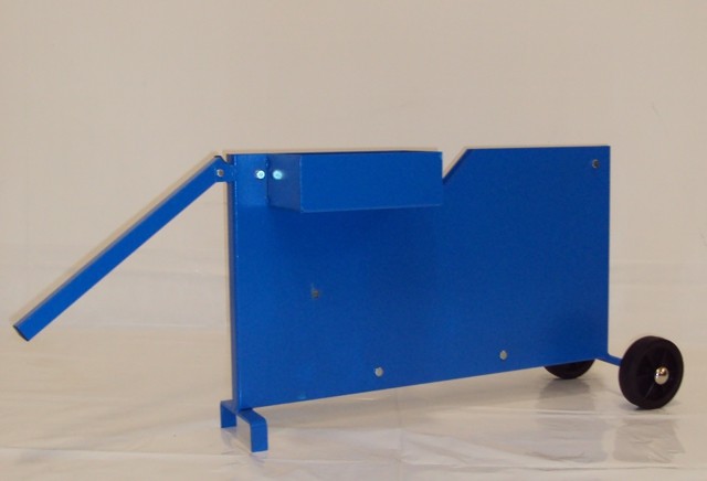 Carrello portareggia adatto a contenere bobine di reggia metallica coon avvolgimento spira su spira.