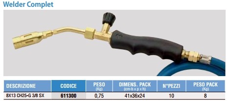 Cannello a gas componibile, un kit completo con impugnatura ergonomica, per lavori di riscaldo e saldatura dolce e lavorazioni termoplastiche.