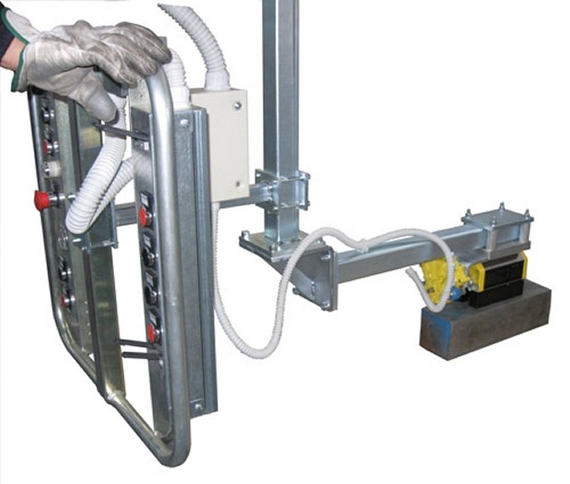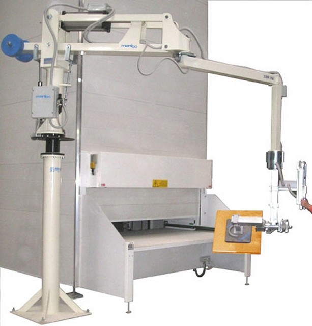 I manipolatori pneumatici a braccio hanno la capacità di sostenere carichi a sbalzo, ciò li rende indispensabili nelle manovre di carico e scarico di macchinari industriali. Grazie all'utilizzo di attuatori pneumatici e di particolari accessori, con i manipolatori industriali a braccio, oltre a sollevare i carichi, è possibile ruotarli, bascularli, ribaltarli o più semplicemente inclinarli. Ogni manipolatore Manibo è fornito con specifico attrezzo di presa, costruito in base alle esigenze del cliente. L'attrezzo di presa è collegato al braccio del manipolatore industriale mediante un giunto rotante, avente 7 passaggi interni di aria, che ne consente la rotazione di 360° continua attorno all'asse verticale. I manipolatori industriali Manibo possono essere fissati a pavimento, montati su base inforcabile autoportante oppure appesi ad un carrello, motorizzato od a spinta, che ne permette la traslazione lungo vie di corsa aeree.