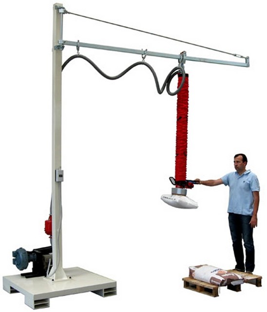 I sollevatori a soffietto eseguono il sollevamento e la presa degli oggetti sfruttando solamente il vuoto, generato da una girante ad alimentazione elettrica o da un tubo di Venturi ad aria compressa. I sollevatori a soffietto, detti anche tubi di sollevamento, sono particolarmente indicati per praticità e velocità per la movimentazione di scatole, sacchi, pannelli, lastre e forme di formaggio. E' stato realizzato uno speciale sollevatore a soffietto, modello TP, specifico per la rapida movimentazione di pacchi e valige di differenti conformazioni che è diventato di comune utilizzo negli aeroporti, presso gli spedizionieri ed alle poste. Manibo è in grado di fornire questo tipo di manipolatori anche per ambienti alimentari e per zone a rischio esplosione classificate ATEX. I tubi di sollevamento sono forniti da Manibo appesi a gru a bandiera, gru a braccio articolato oppure a carriponte leggeri a spinta. Le gru possono essere montate su base inforcabile autoportante per l'utilizzo del sollevatore in più posizioni, senza necessità di alcun ancoraggio a pavimento. Questo tipo di manipolatore industriale, a richiesta, può essere realizzato interamente in acciaio INOX.