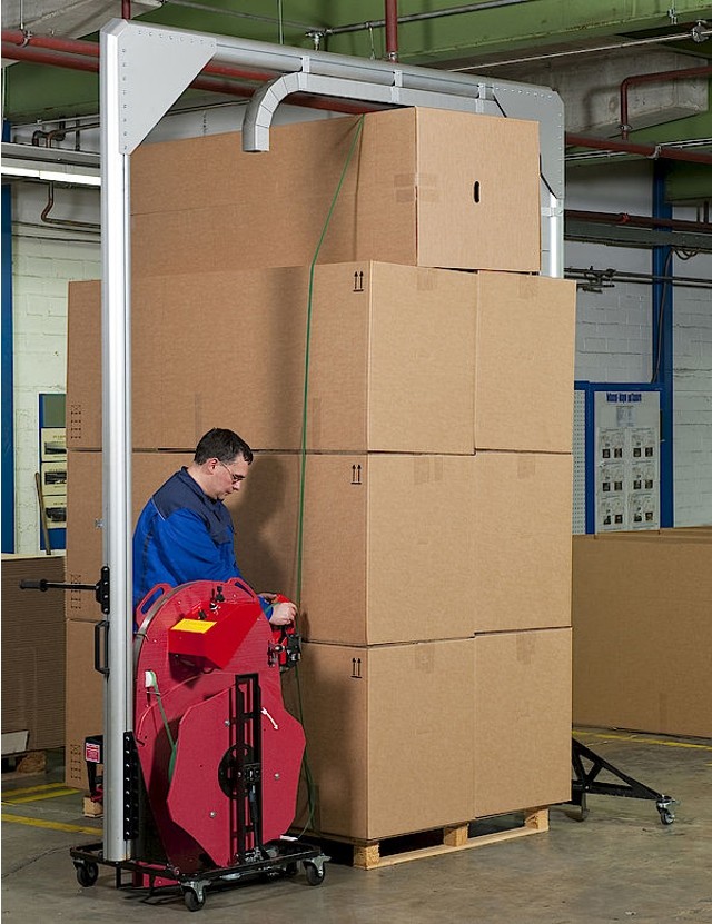 I sistemi di reggiatura ErgoPack consentono all’operatore di effettuare la reggiatura di bancali in modo sicuro, semplice ed ergonomico. La lancia a catena scorre a terra tra le assi del bancale per poi salire ed accompagnare la reggia tra le mani dell’operatore.
