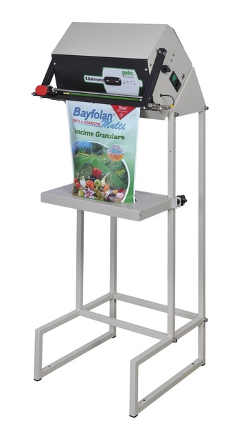 • VERSIONE SS - montata su supporto indipendente, completo di piano di appoggio orizzontale regolabile in altezza. Perfetta per la saldatura in posizione verticale di sacchi voluminosi fino ad un massimo di 5 kg di peso.