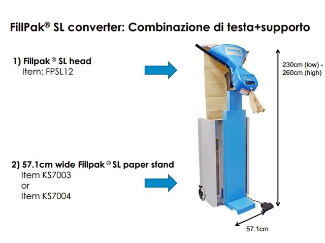 Il sistema di carta FillPak®SL aiuta a migliorare la produttività e l'efficienza riducendo i costi per pacco e riducendo al minimo l'impatto sull'ambiente. Il sistema di carta FillPak®SL è un sistema molto versatile e può essere utilizzato in tutte le situazioni. Il FillPak SL permette all'operatore di riempire rapidamente ed efficacemente pacchetti mantenendo l'attenzione sul processo di riempimento. Le opzioni di controllo consentono all'operatore di riempire con un flusso conveniente e coerente di carta. La possibilità di regolare la testa del FillPak SL in altezza o in inclinazione pemette di soddisfare al meglio qualsiasi esigenza dell'operatore creando una postazione di lavoro confortevole e produttiva.
