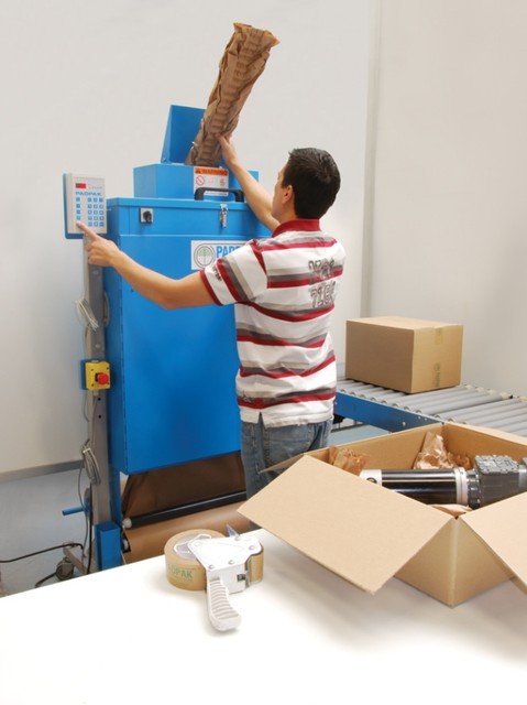 Questo sistema PadPak può essere integrato senza intoppi in un qualsiasi ambiente d’imballaggio