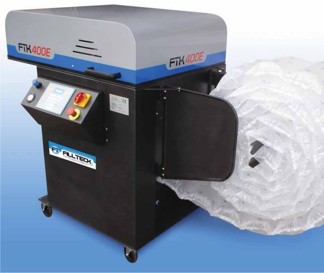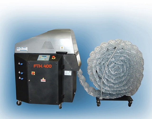 Il sistema FTK 400 produce, dove e quando serve, senza operatore, cuscini aria in PE-HD o PA-PE a seconda delle esigenze, per riempire qualsiasi tipo di imballo e/o proteggere dagli urti anche gli oggetti più delicati riducendo drasticamente il volume degli imballi in magazzino, i costi di trasporto e lo smaltimento dei rifiuti. Il sistema FT di riempimento a cuscini aria, innovativo, flessibile, economico ed ecologico, garantisce anche un’adeguata protezione per prodotti fragili di qualsiasi forma e dimensione. Consigliato compressore lt.150. Poche e semplici impostazioni della macchina, che lavora poi in maniera completamente automatica, consentono di variare dimensioni e formati, il materiale in magazzino non ingombra in quanto con i metro cubo di film si producono oltre 500 metri cubi di cuscini.
