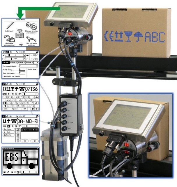 Stampante industriale a getto d’inchiostro ultracompatta per superfici porose e non porose. La stampante è composta da un case in ACCIAIO INOX che integra il gruppo elettrovalvole e il microprocessore miniaturizzato.