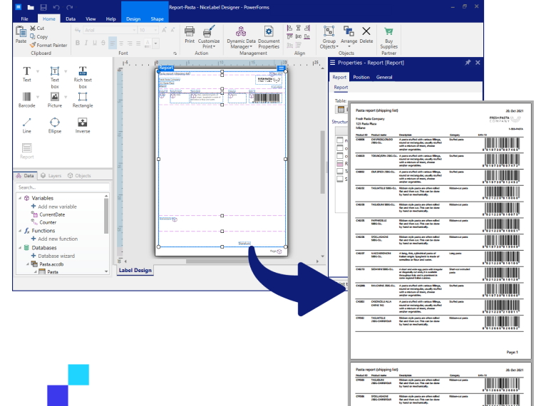 NiceLabel Designer consente di disegnare rapidamente modelli di etichette dinamici e di ottimizzare l'efficienza e l'accuratezza.Il configuratore NiceLabel fornisce un'esperienza utente familiare simile a quella di Microsoft Word, che consente a chiunque di progettare rapidamente etichette, evitando di coinvolgere il reparto IT e affidando il compito agli utenti aziendali. Esso sposta la progettazione delle etichetta al di fuori del reparto IT e la mette nelle mani degli utenti dell'azienda. È possibile eliminare gli errori adattando l'interfaccia di stampa all'utente e al processo oppure integrando l'etichettatura con le applicazioni e i dati principali esistenti.