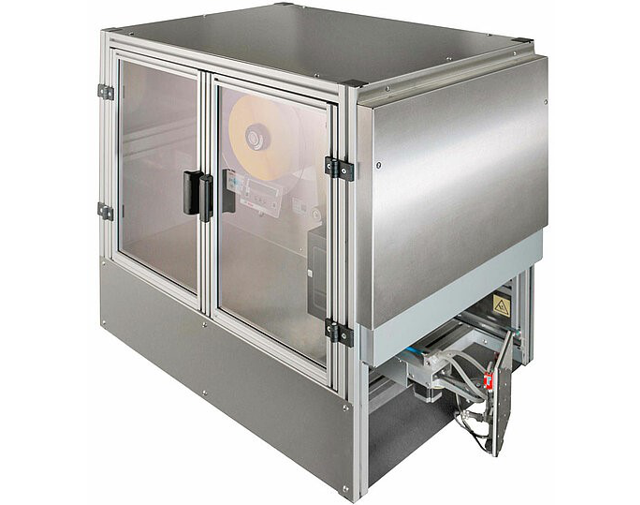 Spitlabel 2 Assi è una stampante-applicatore automatico di etichette che permette attraverso un sistema robotizzato di applicare 2 o più etichette in posizioni e lati differenti su di un pallett. Fiore all’occhiello della gamma, questa soluzione nasce per applicare etichette formato EAN/UCC direttamente sulla linea produttiva. La tecnologia costruttiva, consente con una sola sosta l’applicazione delle 2 tradizionali etichette richieste dalle specifiche internazionali GS 1 / INDICOD sui due lati adiacenti del pallett. L’integrazione è estremamente semplice in quanto sono previsti tutti i segnali d’interfaccia per il dialogo con le logiche programmabili esistenti. Il piattello porta etichette è azionato da una serie di motori passo-passo controllati da un microprocessore. La sua programmabilità consente la scelta di vari cicli operativi con la possibilità di applicare 2,3,4, etichette all’interno di un ciclo predefinito.