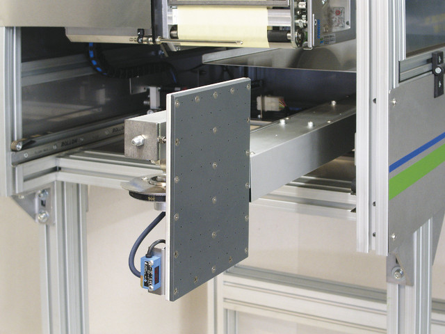 Esempio: 1° stop pallett - applicazione fronte—applicazione lato adiacente - avanzamento pallett 2° stop pallett - applicazione posteriore - applicazione lato adiacente - fine ciclo Totale etichette applicate 4 con 2 soste ♦ Il piattello é dotato di un sensore ottico di prossimità, con sensibilità regolabile, che rileva l’avvicinamento alla superficie del prodotto. È predisposto per il montaggio di uno scanner laser sul bordo inferiore, per verificare la leggibilità di eventuali codici a barre presenti nella parte bassa dell’etichetta. |