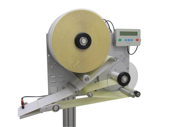 Lo SPITLABEL AL-122 è un applicatore per etichette prestampate che combina elevate prestazioni, precisione, flessibilità, robustezza e facilità d'uso in un pacchetto compatto ed economico. Questa macchina può applicare etichette ad una velocità che fino a 70m/min(in funzione del tipo di etichette utilizzato). La velocità può essere regolata facilmente sia attraverso il display completo di tastiera che attraverso un encoder (opzionale) nelle applicazioni a velocità variabile. L'applicatore AL-122 permette di adattare la propria velocità con quella del nastro trasportatore, con un range di variabilità della velocità che va da 0 a 70m/min, inoltre il nastro trasportatore può essere anche arrestato e riavviato nel mezzo di un’applicazione. L'applicatore Spitlabel AL-122 accetta rotoli di etichette  con diametro esterno fino a 300mm e con anima 76mm. Le etichette possono avere una larghezza fino a 120mm (standard) o 180mm (opzionale). Il meccanismo di movimentazione della carta è gestito da motori passo-passo e microprocessori che permettono di mantenere una tensione costante senza alcuna meccanica di regolazione, eliminando operazioni di regolazione e manutenzione. Grazie alla gestione intelligente ed efficiente dei motori, la richiesta di potenza è limitata ad un massimo di 120W a pieno regime. Lo SPITLABEL AL 122 è un applicatore molto compatto, con una profondità totale di soli 240mm (per etichette  fino a 120mm di larghezza) può essere facilmente installato anche in spazi ristretti. L'interfaccia operatore può essere davvero minimalista: un solo pulsante per avviare (o riavviare) il funzionamento e una lampada a tre colori (opzionale) visibile da lontano, che indica le condizioni di funzionamento della macchina. Per le installazioni in cui è richiesta una gestione più completa è disponibile un altro tipo di controller con display LCD 2x20 caratteri e 5 tasti funzione/diagnostica con supporto multi-lingua. Il controller può essere staccato dal corpo macchina e posizionato in remoto diventando più accessibile per l'operatore. L'interfaccia USB offre la possibilità di utilizzare un PC esterno per controllare a distanza e configurare la macchina, inoltre è possibile controllare contemporaneamente anche più macchine dallo stesso PC.