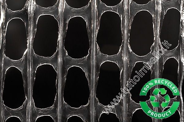 Film estensibile macroforato rinforzato, prestirato, per uso manuale. Film leggero dotato di un’ottima resistenza meccanica. Grazie ai suoi grandi fori permette un’ottima aerazione della merce senza il rischio che le aperture possano essere chiuse, anche nel caso in cui si sovrapponga il film per più volte durante l’avvolgimento. L' utilizzo delle più recenti tecniche di produzione rende questo film estensibile più sottile a parità di resistenza, questo rende il prodotto più economico e nel contempo ecologicamente sostenibile. Questo prodotto è riciclabile al 100%.