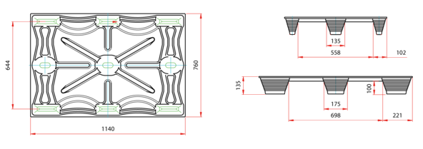 Sono due le dimensioni di pallets Inka studiate appositamente per soddisfare le esigenze delle Aziende esportatrici che utilizzano abitualmente container per le spedizioni oltremare. Il pallet quadrato F/11 mm 1140 x 1140 ed il pallet F/76 mm 1140 x 760 permettono di sfruttare in maniera ottimale lo spazio sul container; cosa che non è possibile con le tradizionali misure standard Euro studiate per i trasporti su gomma e non per i container. Utilizzando misure apposite, come il pallets F/11 ed il pallet F/76, la larghezza del container viene utilizzata tutta con conseguente possibilità di caricare più pallets, quindi più materiale, sullo stesso container.