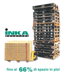 Il mezzo bancale 600x800mm é a volte piú che sufficiente e occupa meno posto nel camion, nel vagone o nel container via  mare. INKA produce: mezze pedane in misura 600x800mm, un quarto di pedana in miusura 400x600mm, un terzo di pedana in misura di 400x800mm ma anche bancali in formato industriale in misura 1000x1200mm tutti in legno pressato. Questa varietá di formati di pallets permette non solo un carico ottimale del camion e un risparmio sui costi di trasporto ma facilita anche la riduzione di gas inquinanti CO2